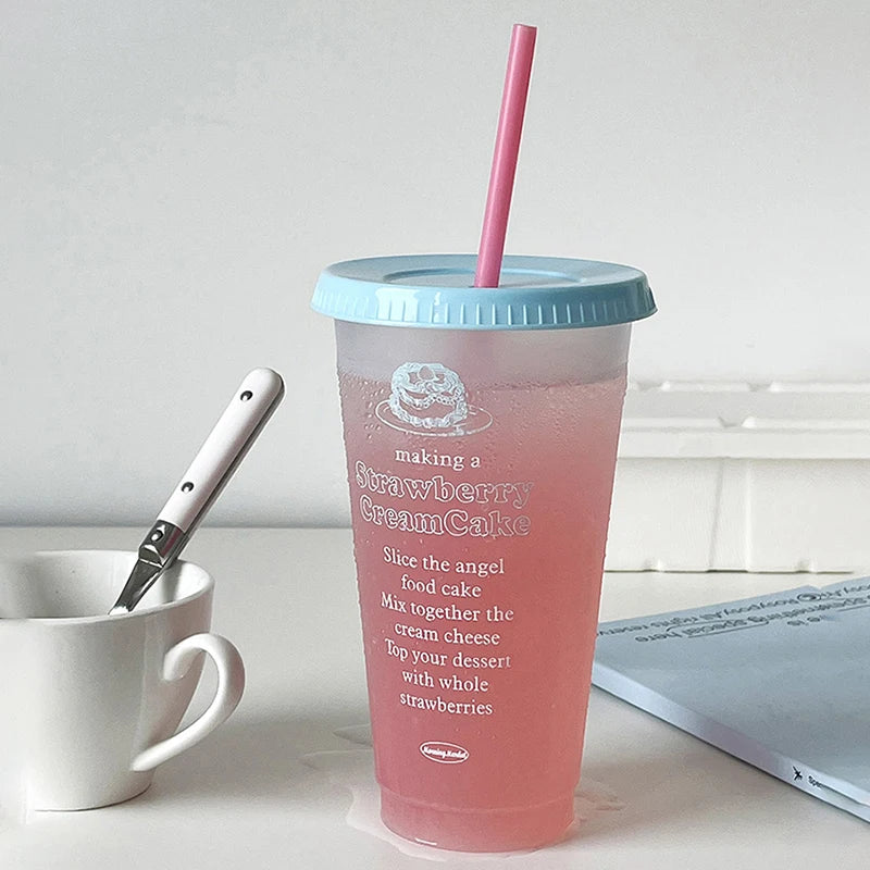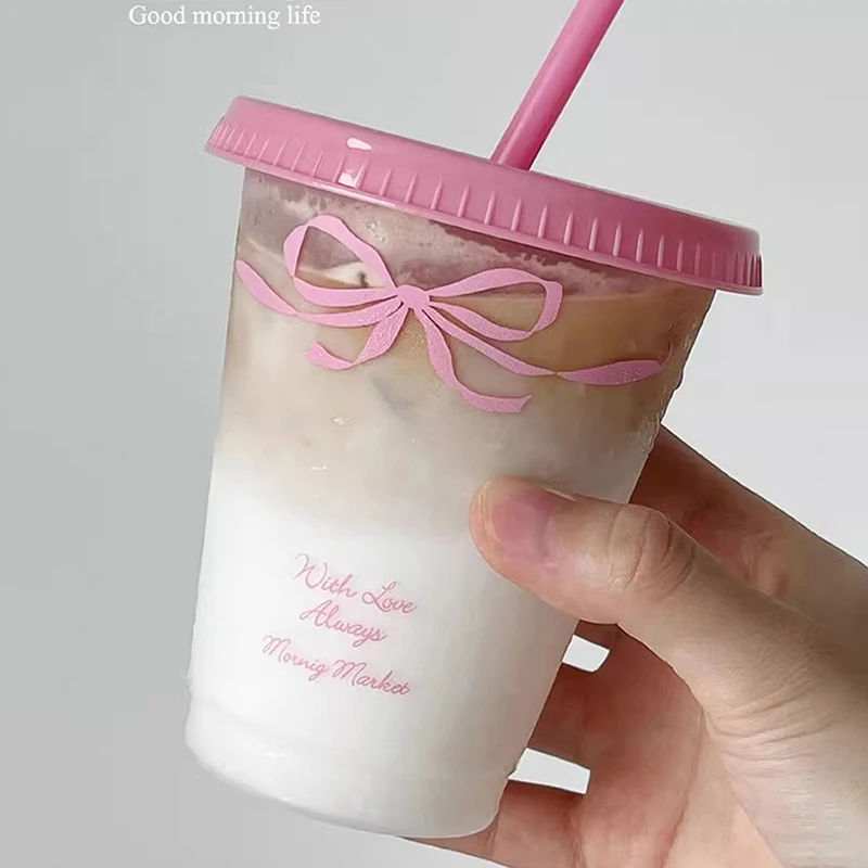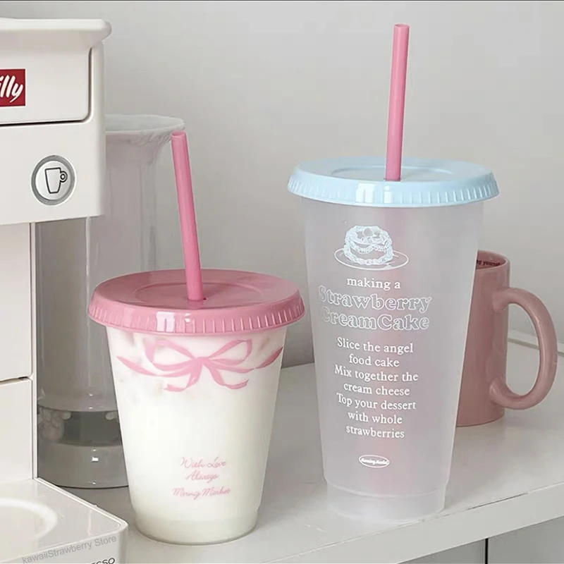 Kawaii Water Cup With Lid Straw For Coffee Juice Milk Tea Cute Plastic Water Bottle Portable Reusable Drinking Bottles BPA Free