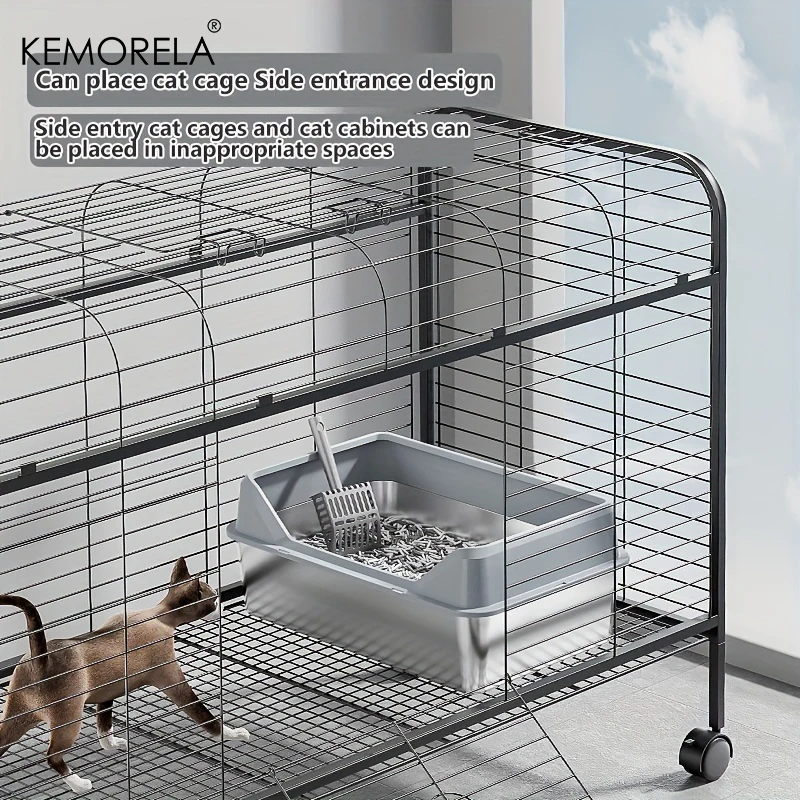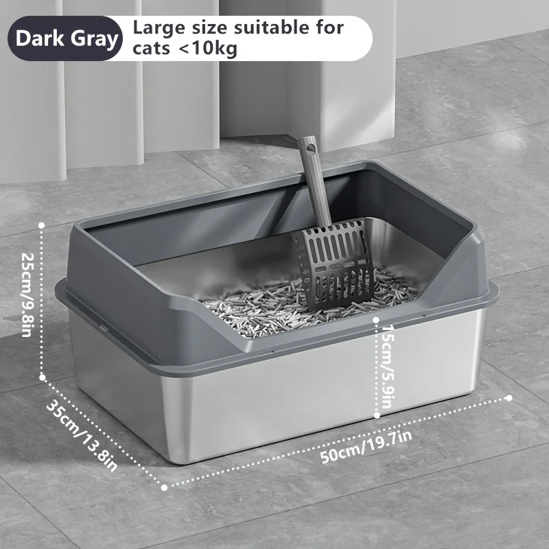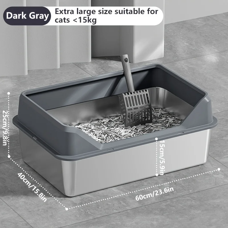KEMORELA XLExtra Large Stainless Steel Litter Box Enclosure with Lid High Side Large Cat Litter Tray For Big Cat Including Scoop