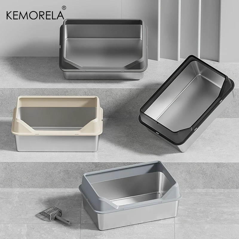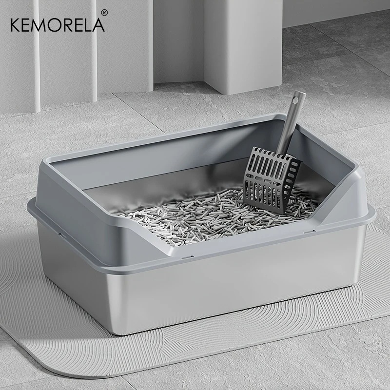 KEMORELA XL Extra Large Stainless Steel Litter Box Enclosure with Lid High Side Large Cat Litter Tray For Big Cat With Scoop
