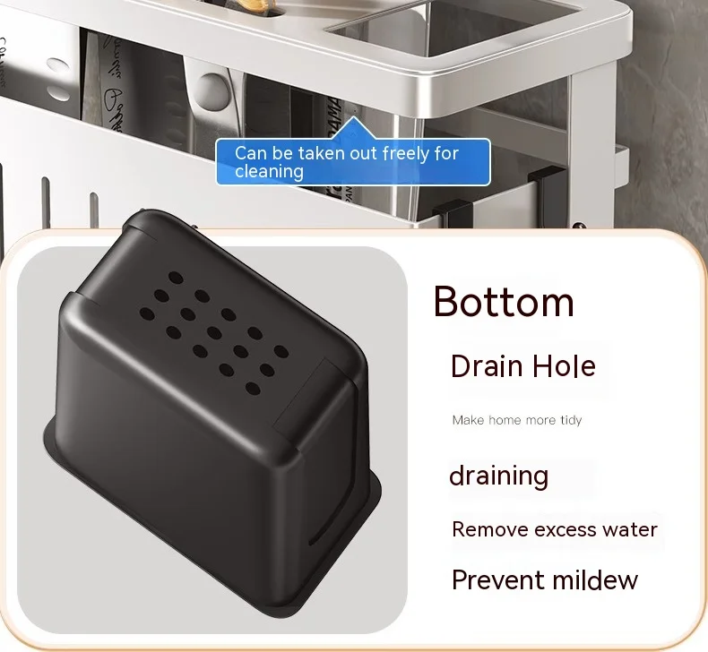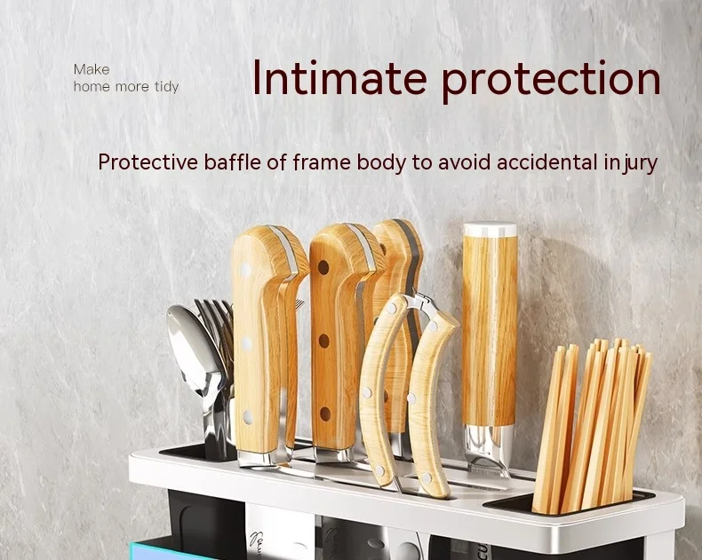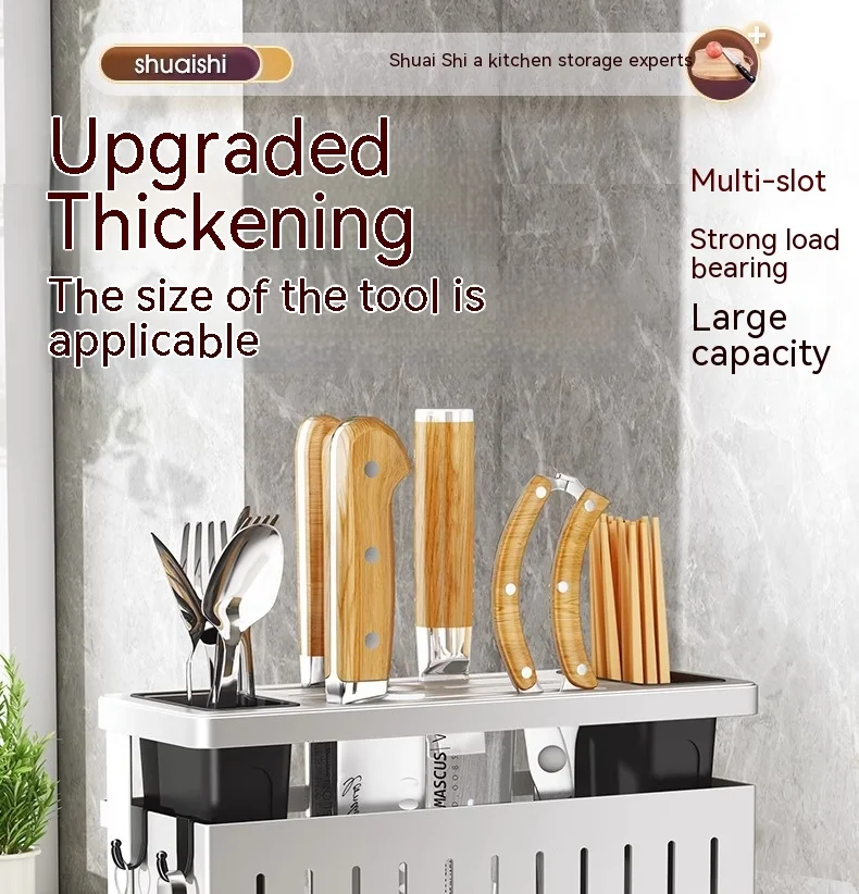 Kitchen wall mounted storage knife rack Spice rack Multi-functional storage rack Non-porous chopsticks spoon storage rack