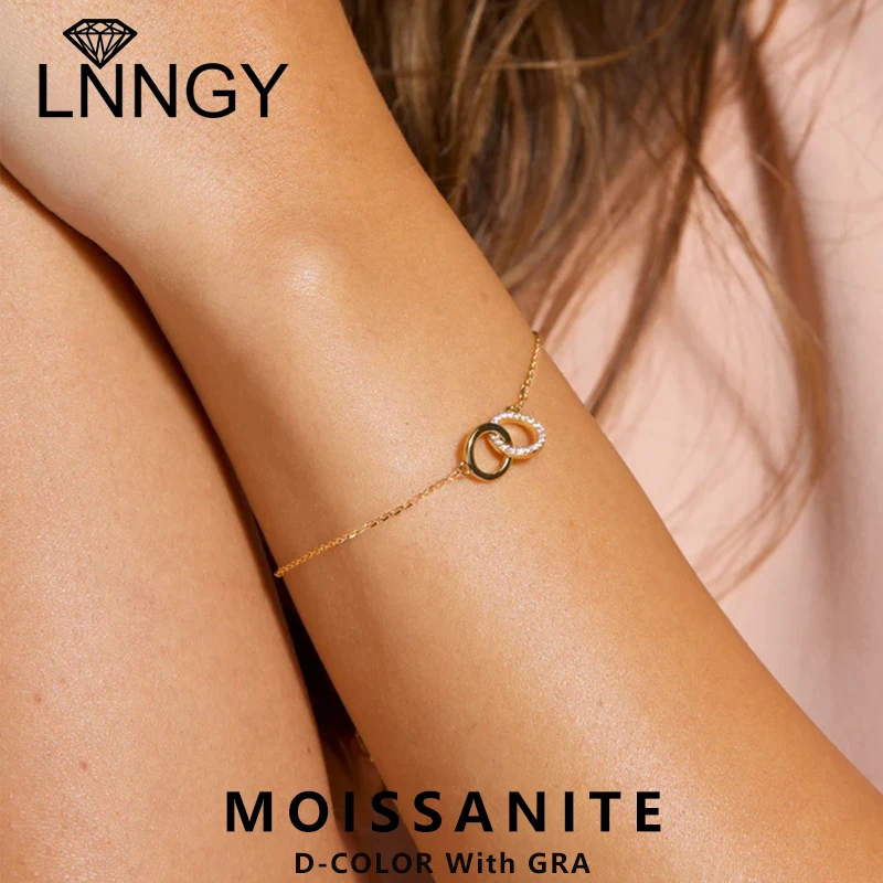 Lnngy 925 Silver Bracelets for Women Certified Pave 1mm(0.005ct) Double Circle Eternity Moissanite Bracelet Multilayer Jewelry