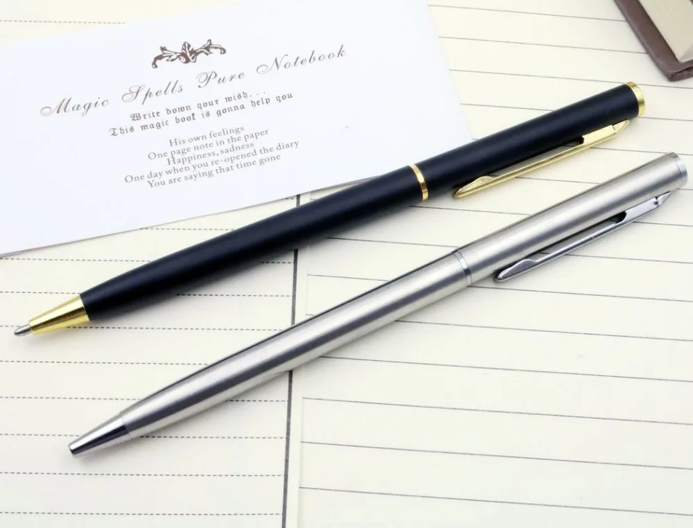 luxury High quality brand matte black student pen stainless golden wave Engraving technology Ball point pen Office Supplies
