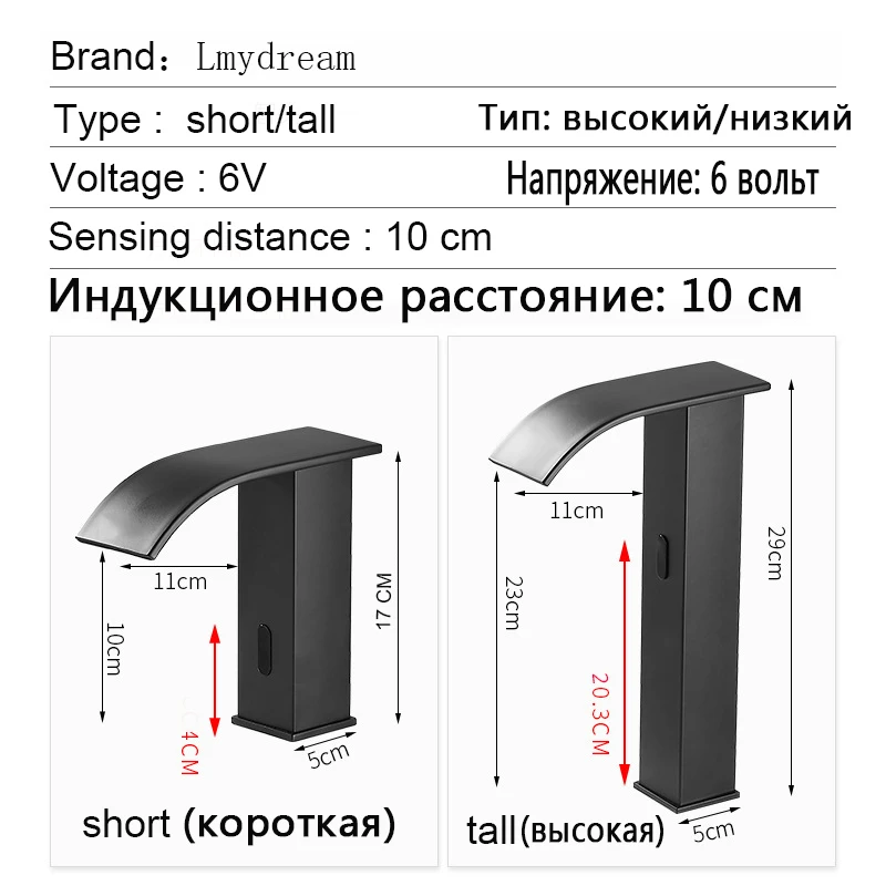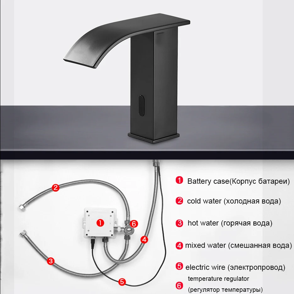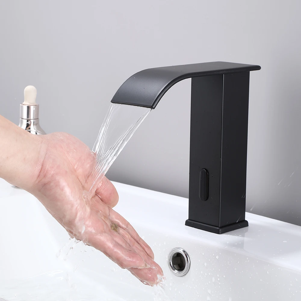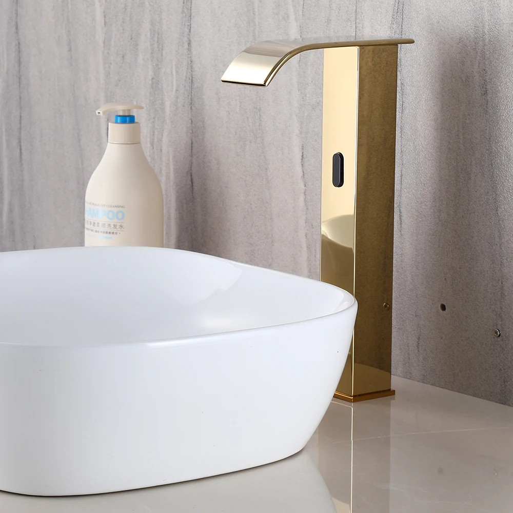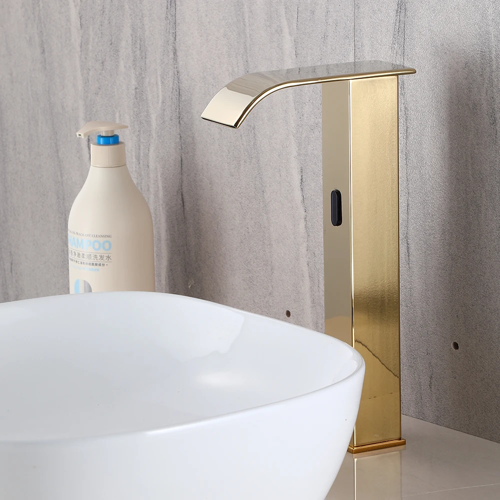 Luxury Sensor Bathroom Faucet Deck Mounted Tap Short or Tall Sink Mixer Battery Powered Infrared Sensing Basin Tap