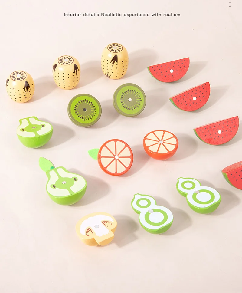 Vegetables and fruits are cut and fun, using high-quality wood, non-toxic environmentally friendly water-based paint, you can rest assured that children play. It can train the baby's small hand grasping ability, promote the baby's hand-eye coordinated development, improve cognition, and is a good toy for parent-child interaction. Hurry up and take it home!