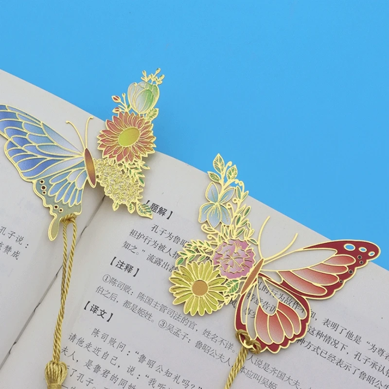 Metal Butterfly Flower Bookmarks Exquisitely Hollow Tassel Pendant Book Clip Students Reading Tool School Stationery Supplies