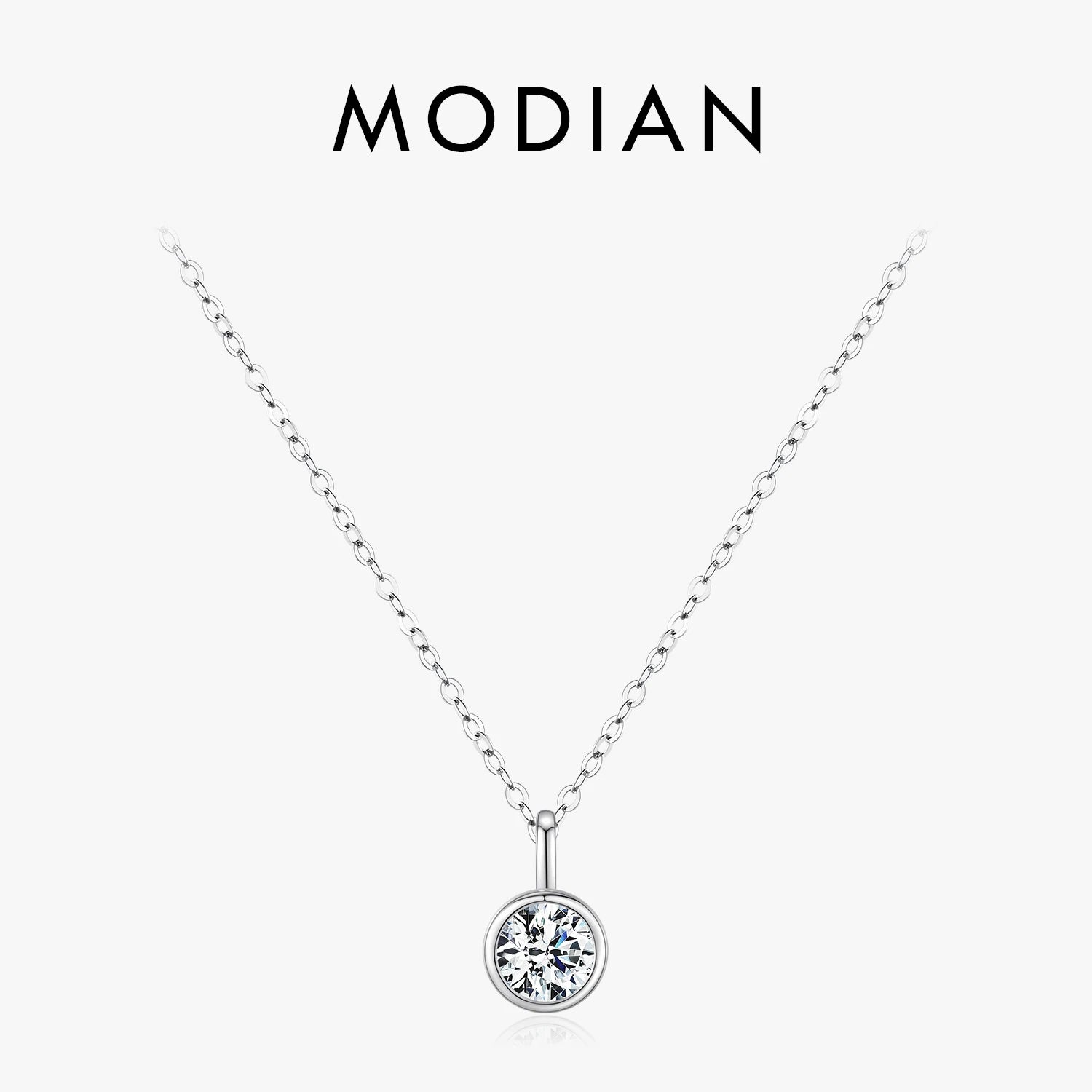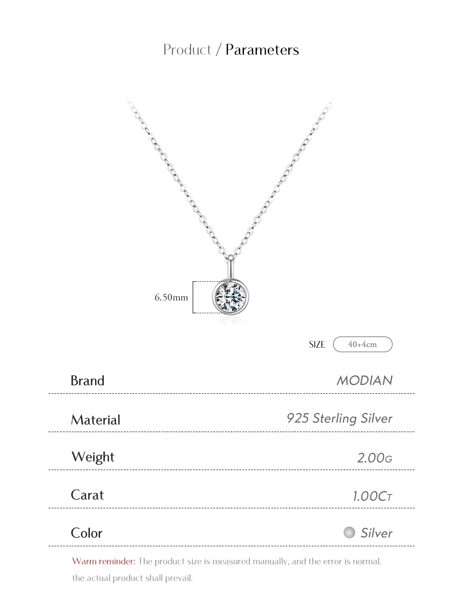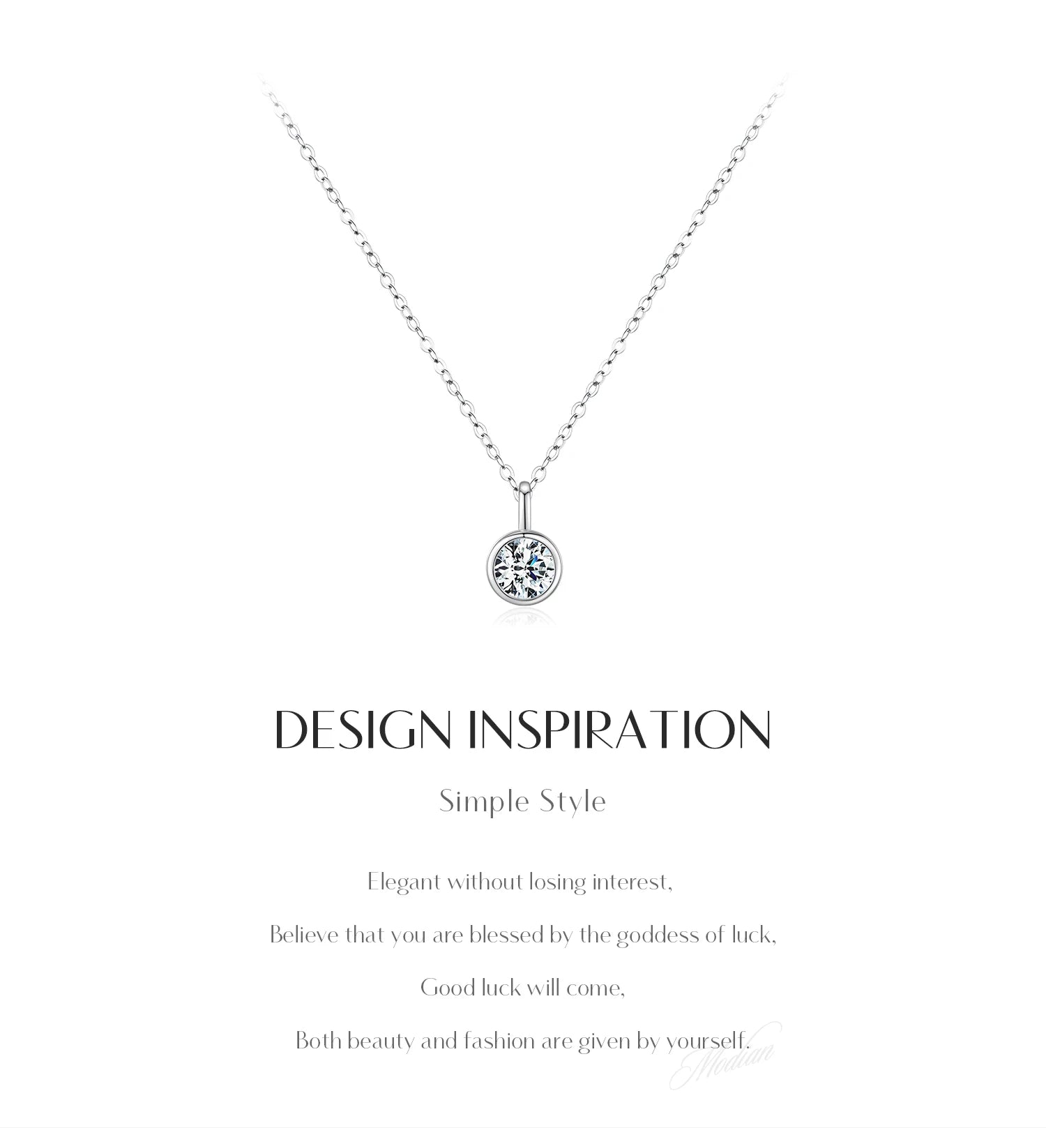 MODIAN 1 Carat D Color Round Bezel Setting Moissanite Pendant Necklace 925 Silver Lab Diamond Women Jewelry With Certificate Box