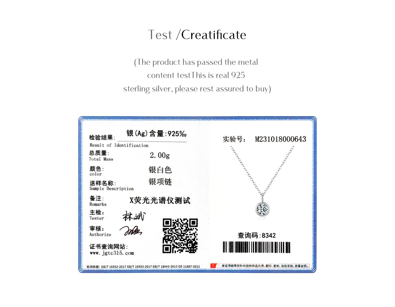 Necklace Main Stone Weight/Pieces:Moissanite Diamond 1.00 Carat