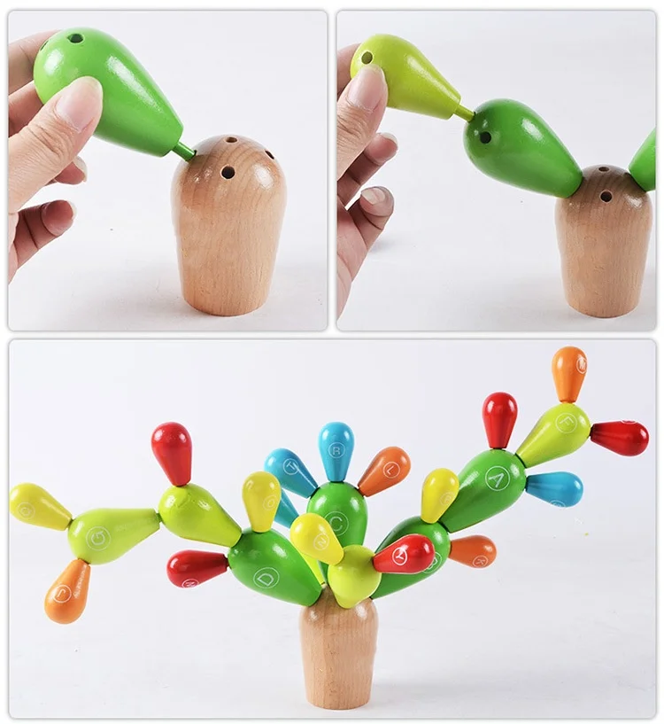 Montessori Wooden Balance Cactus Puzzle Stacking Rainbow Cactus Toy Fun Educational Game For Boys & Girls