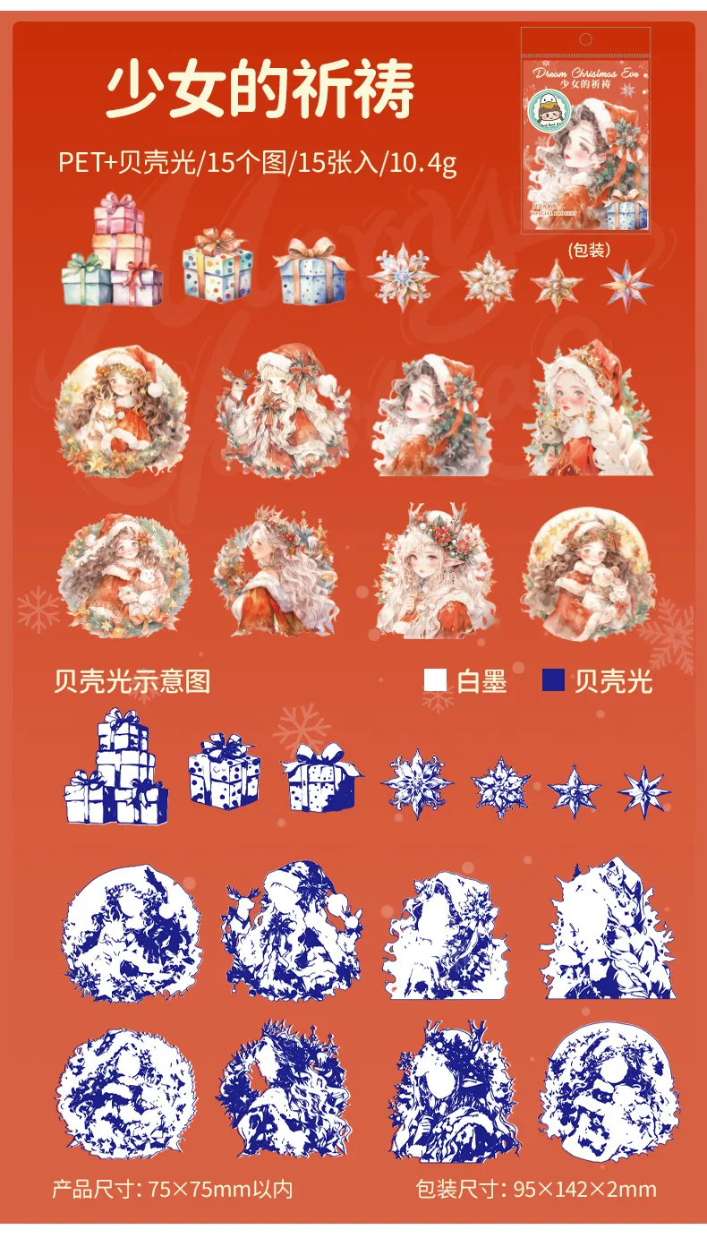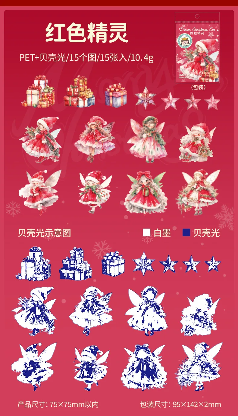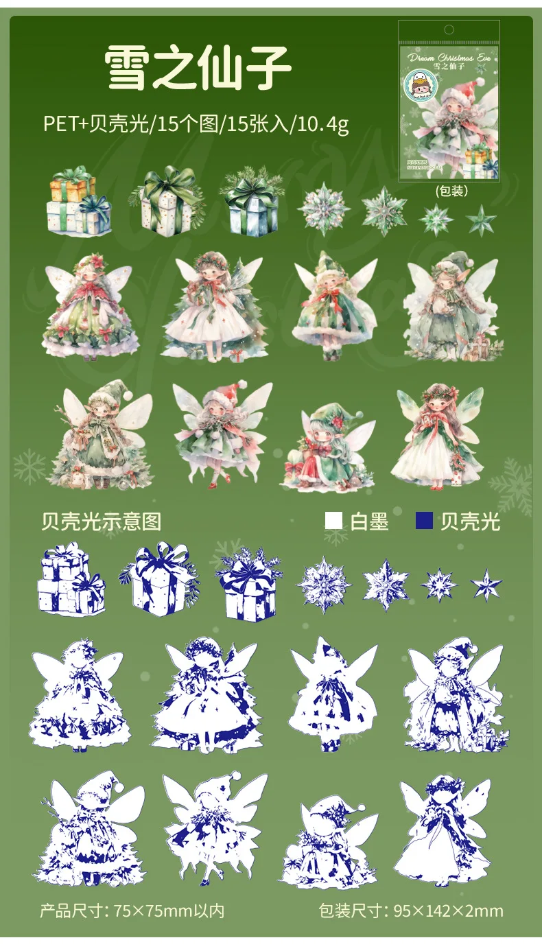 Mr. Paper, 6 Styles, 15pcs/bag, Christmas Themed Series Elf Princess Girl Sticker Decoration Scrapbook, Phone Case, Notebook
