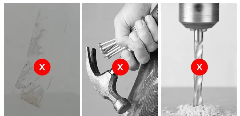 ① We don't suggest applying it on the paint wall, flimsy wall, rough wall, powder wall, wet surfaces or uneven surface