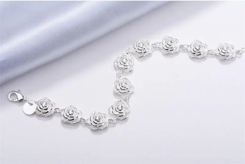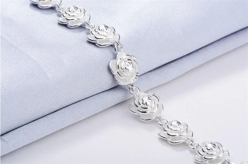New 925 Sterling Silver Full Rose Flower Chain Bracelet For Women Fashion Pretty Wedding Party Holiday gift fine luxury Jewelry