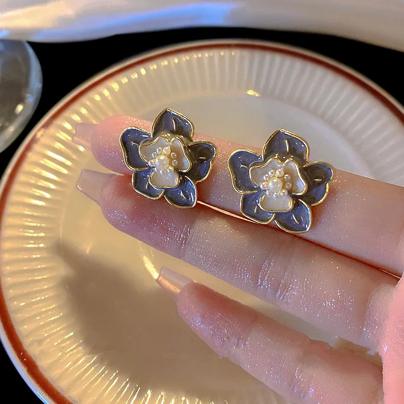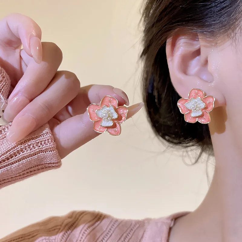 New Fashion Trend Unique Design Elegant Delicate Light Luxury Pearl Camellia Earrings Women Jewelry Wedding Party Premium Gifts