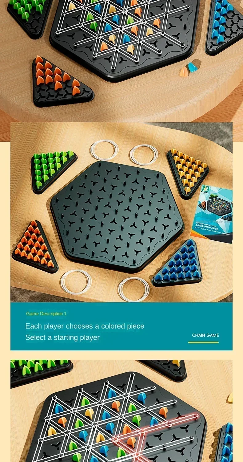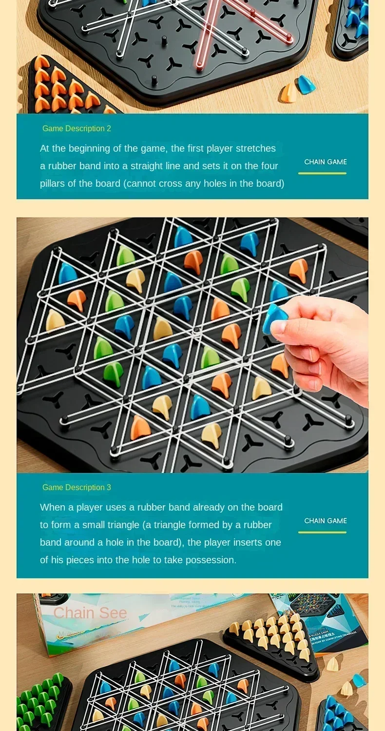 New Geometry Chain Chess Puzzle Triangle Chess Desktop Game Rubber Band Training Family Interaction Exercise Thinking Toys Gifts