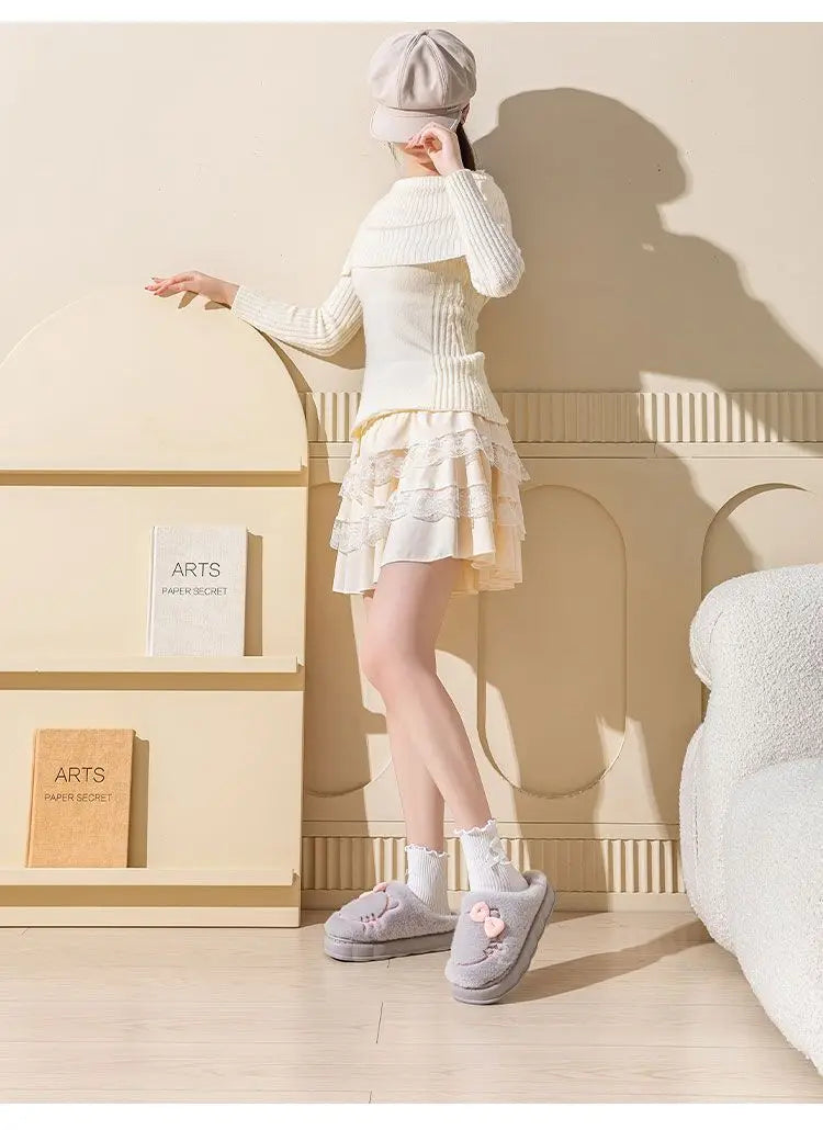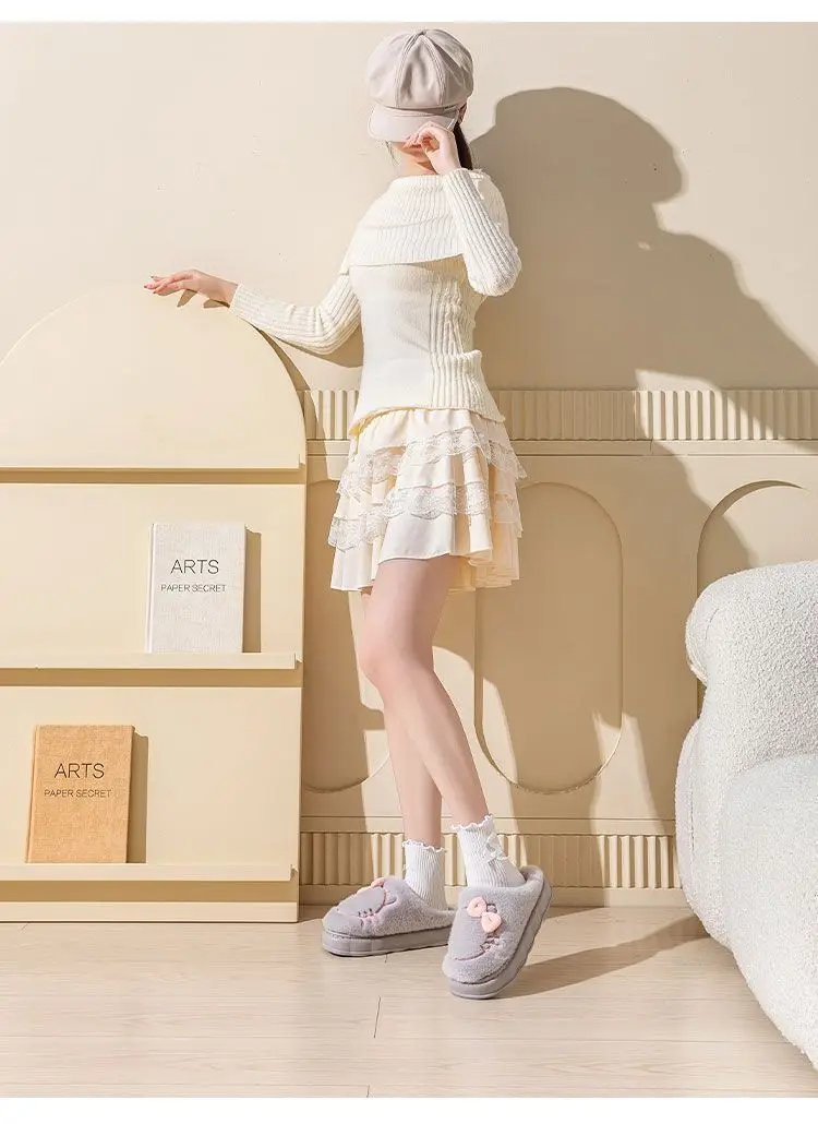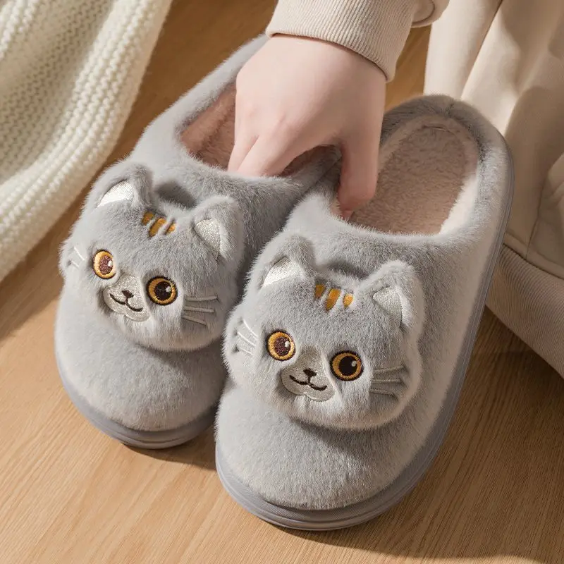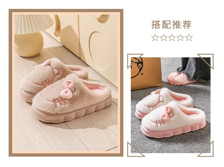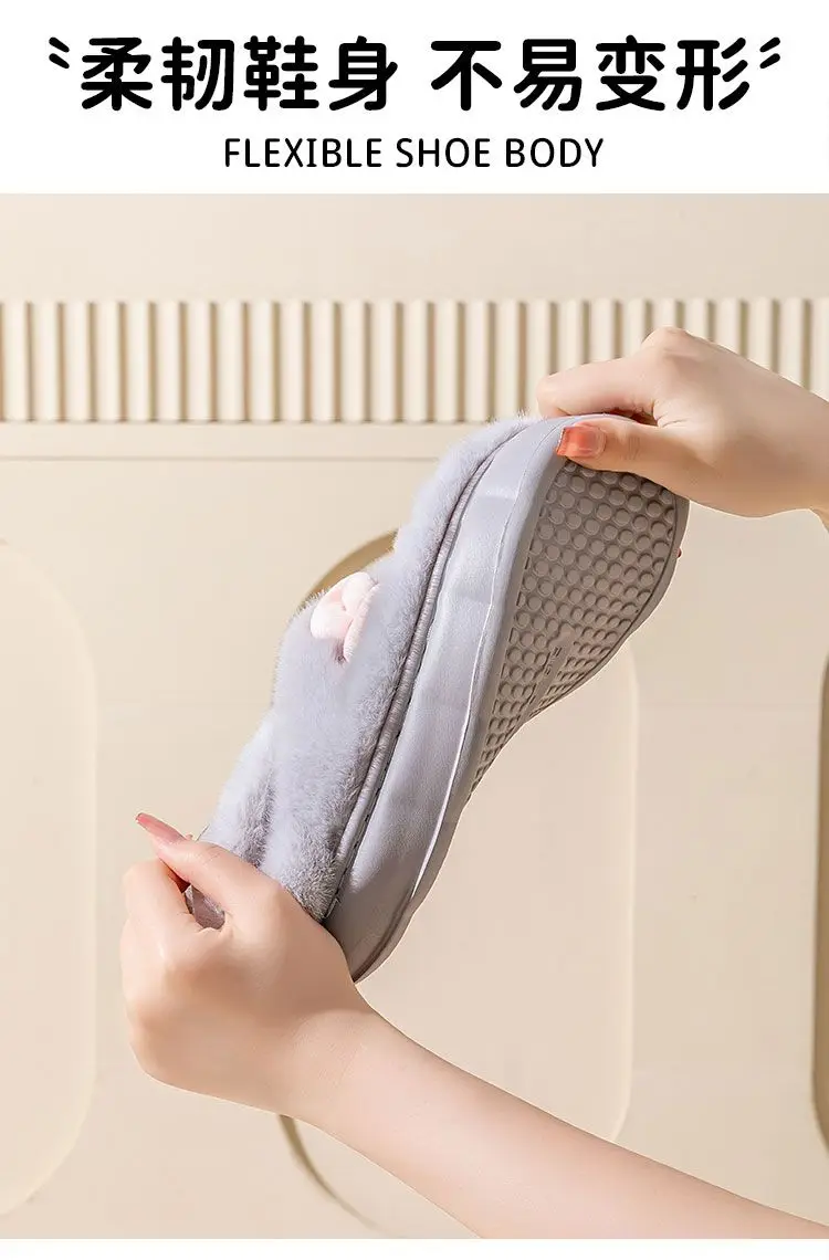 New green bow slippers winter women's 2024 shoes thick sole fuzzy slippers for home mules shoes woman fluffy metal house slipper