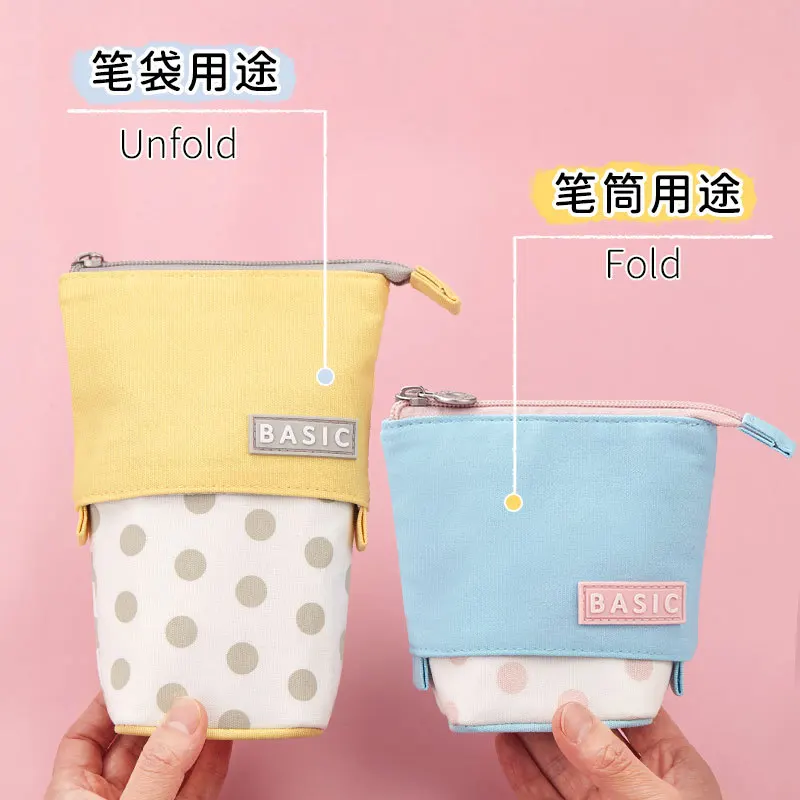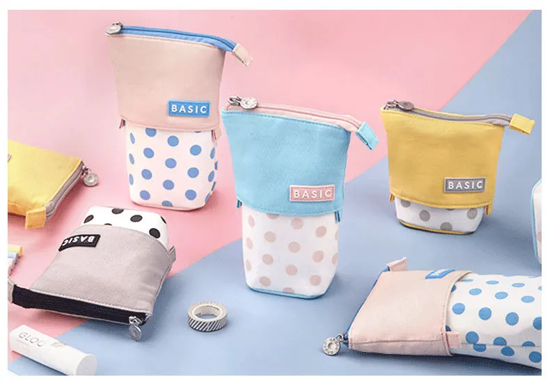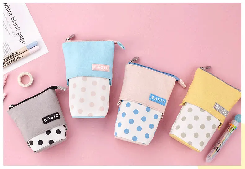 Pencil Case Dots Pen Holder Canvas Fabric Korea Stationary School Supplies Kid Ruler Organizer Gift Bag Transformer Standing Box