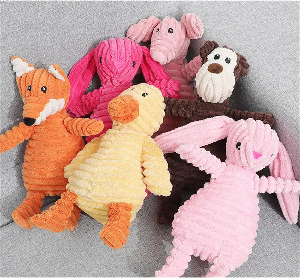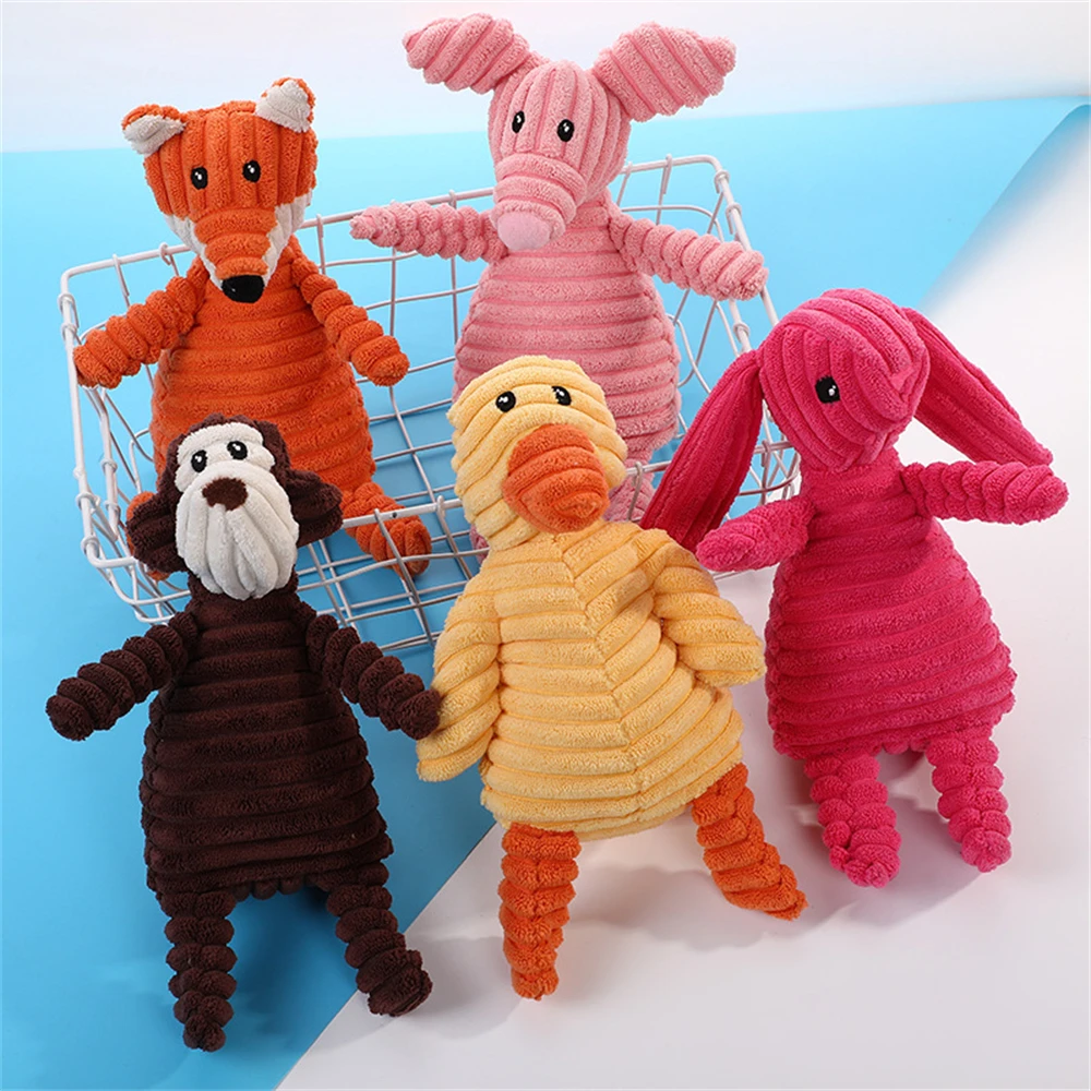 Plush Dog Toys Corduroy Animal Shape Dogs Chew Squeaky Toy Bite Resistant Molar Teeth Cleaning Puppy Training Interactive Toys