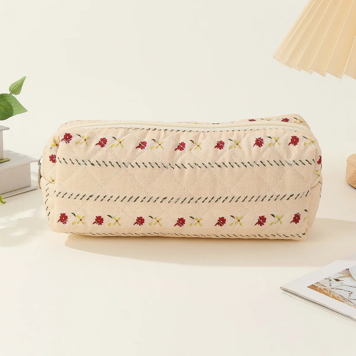 Quilted Cotton Makeup Bag Flower Soft Clutches Women Zipper Cosmetic Organizer Cute Large Make Up Purse Toiletry Pencil Cases