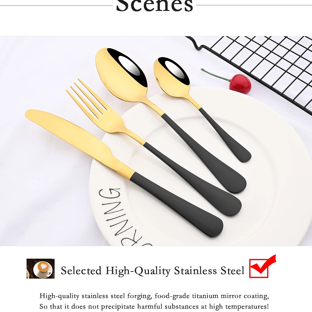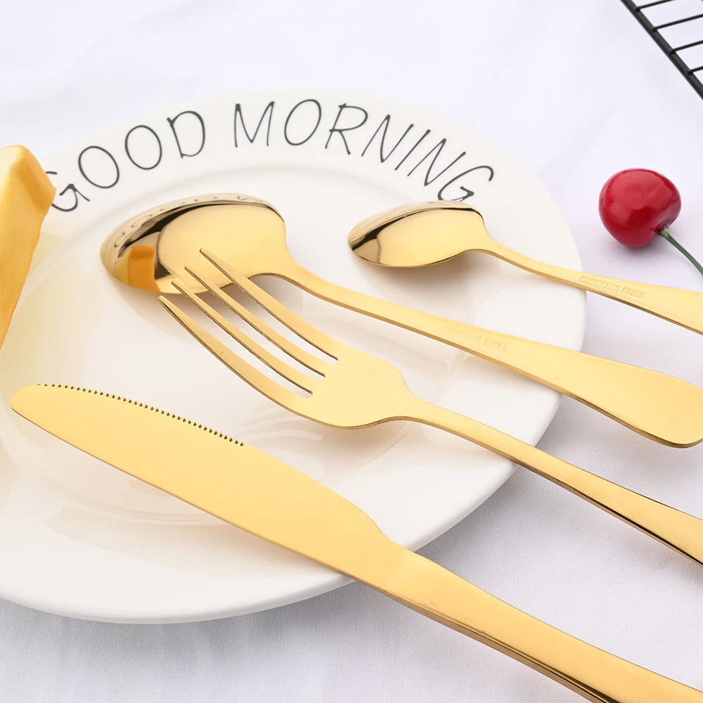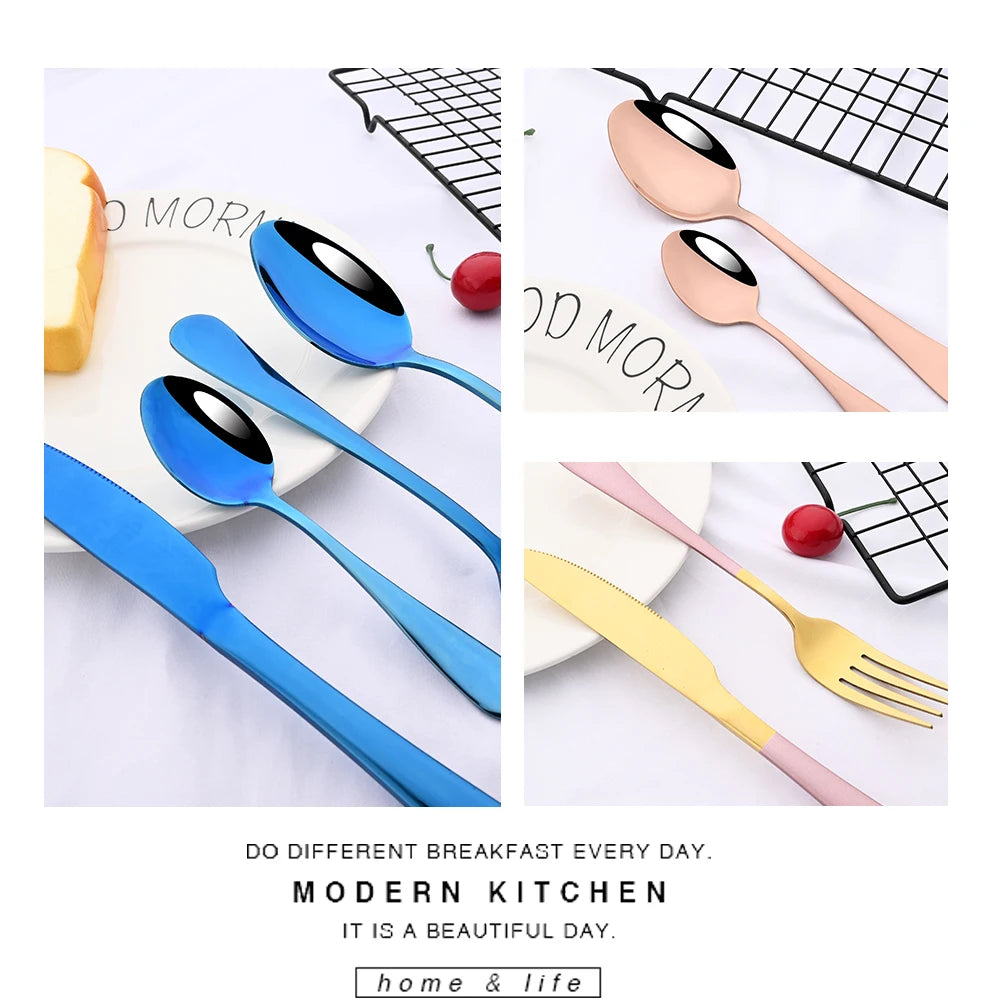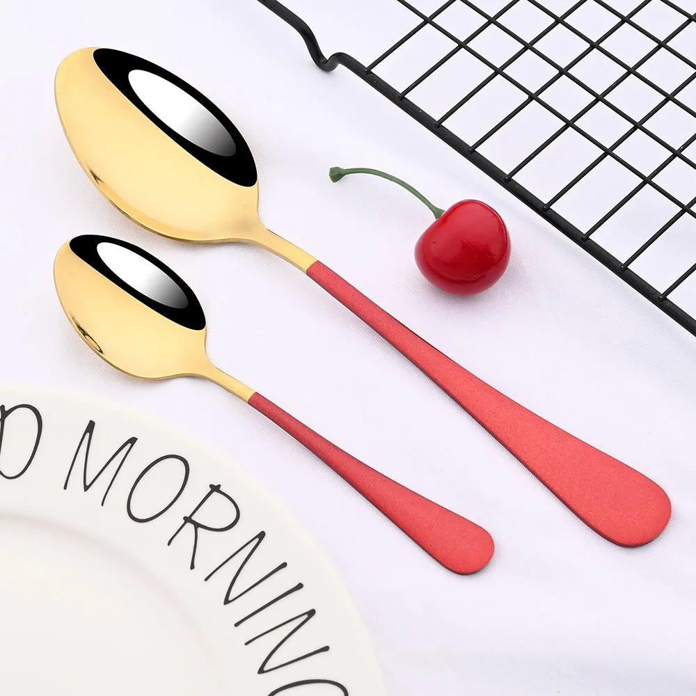 Red Silver Mirror Cutlery Set 24Pcs Dinnerware Set Flatware Cutlery Fork Knife Spoon Stainless Steel Silverware Tableware Set