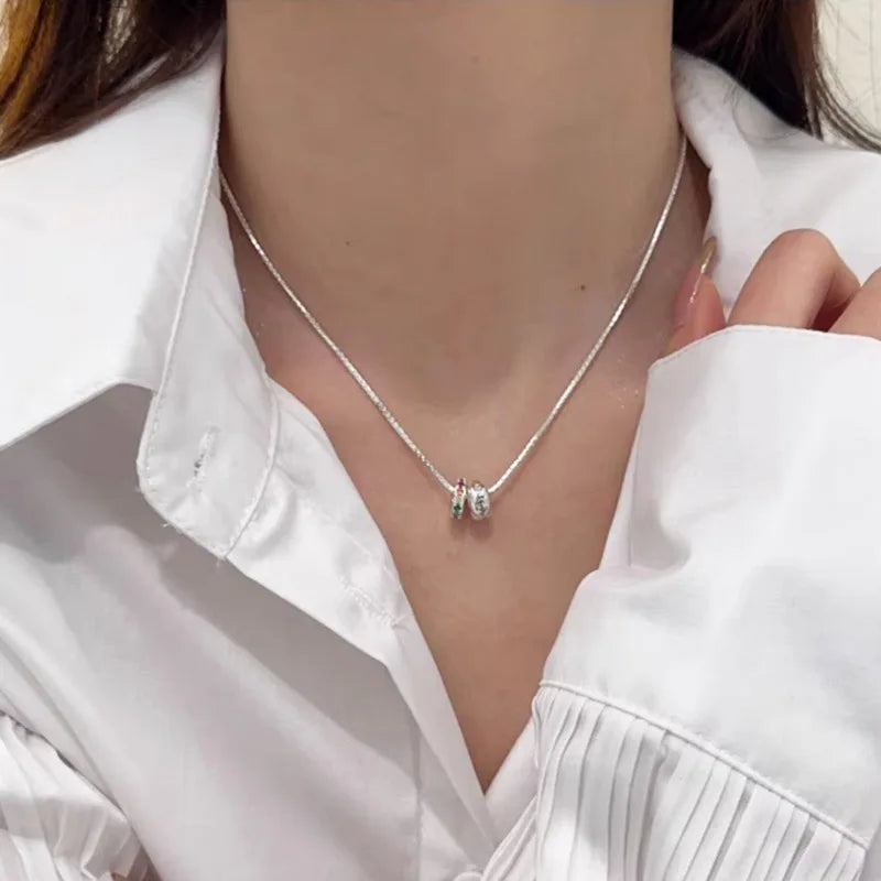 S925 Sterling Silver Snake Bone Chain Colored Zircon Garland Rainbow Pendant Necklaces For Women Round Circle Charm Fine Jewelry