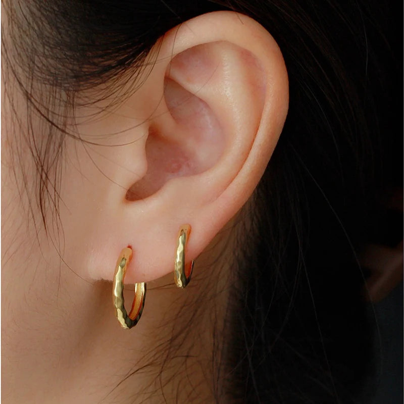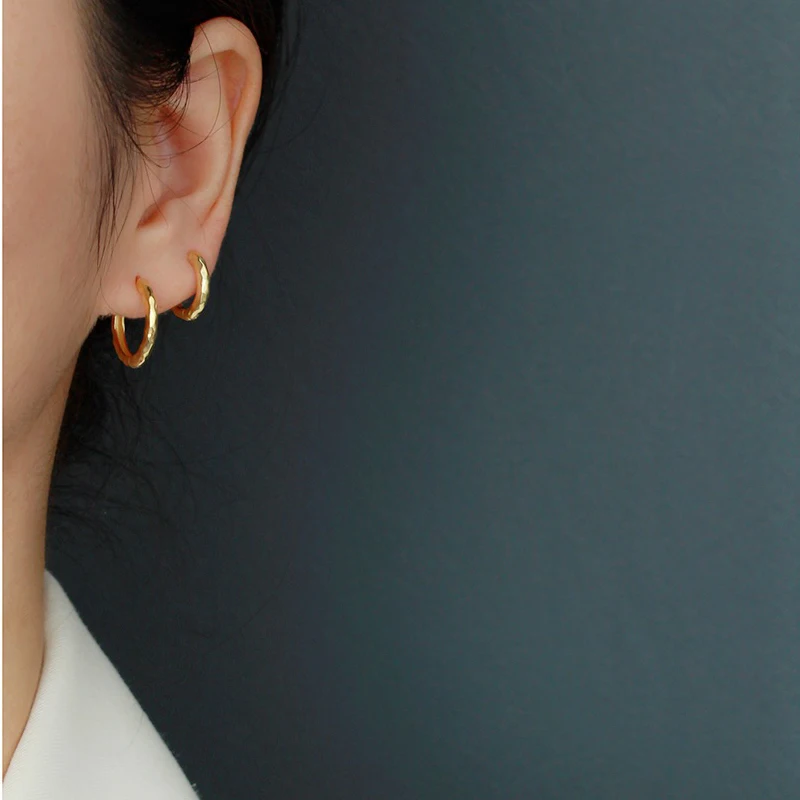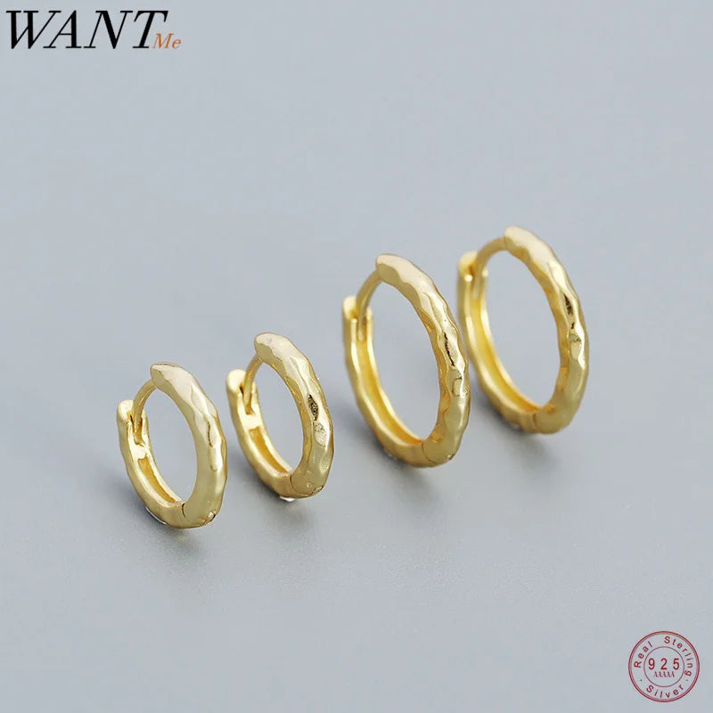 WANTME 925 Sterling Silver Simple Baroque Irregular Whacking Piercing Ear Clasps for Women Fashion Hoop Earrings Party Jewellery