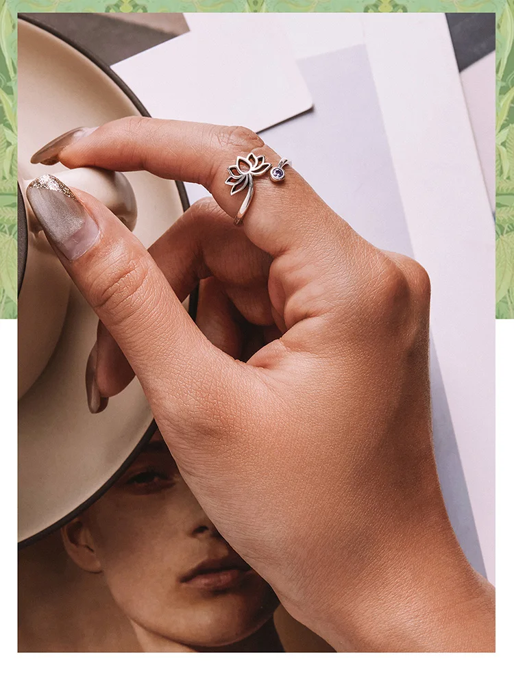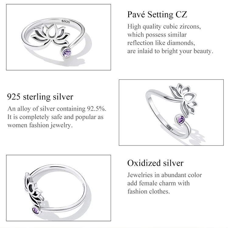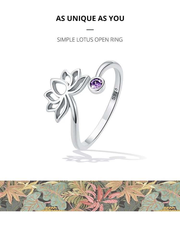 WOSTU 925 Sterling Sliver Lotus Flower Adjustable Rings Finger Purple Zircon Hollow Open Ring For Female Original Jewelry CQR821